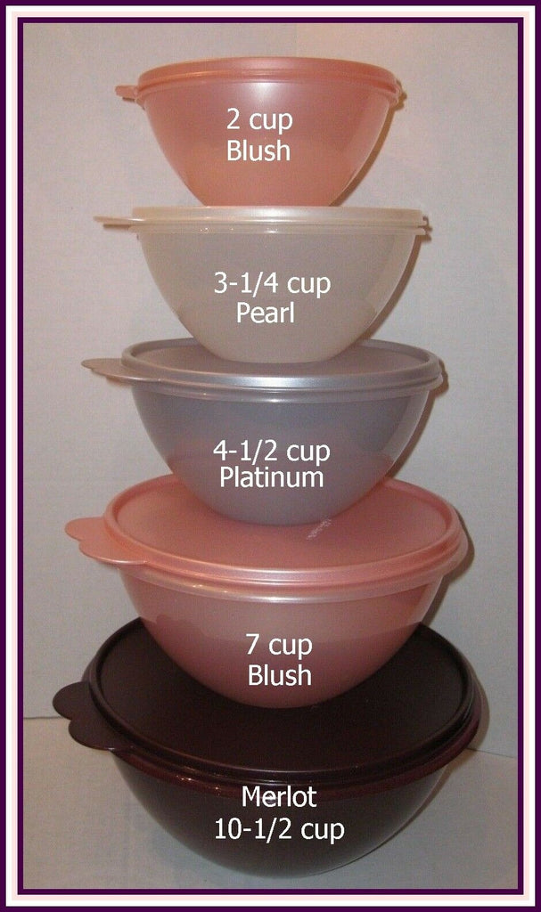 Tupperware 5 SHEER WONDERLIER NESTING BOWLS w/ VINTAGE COLOR SEALS NEW