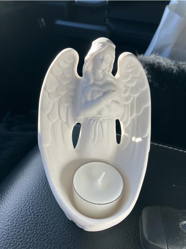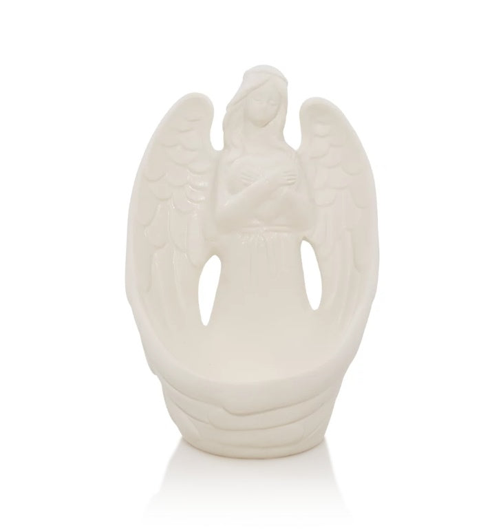 YANKEE Wonderland Angel Heart Glazed White Ceramic Tealight Holder NIB